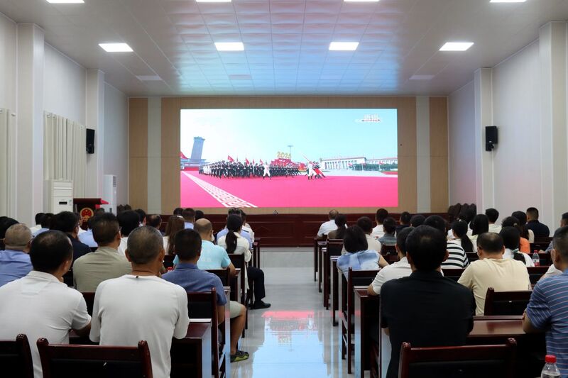 市人大常委会副主任、县委书记李仁军,县委副书记、县长张程,县人大常委会党组书记张福荣,县人大常委会主任杨双全,县政协主席吴雪松等县领导与广大机关干部一起收看纪念中国人民抗日战争暨世界反法西斯战争胜利80周年大会。