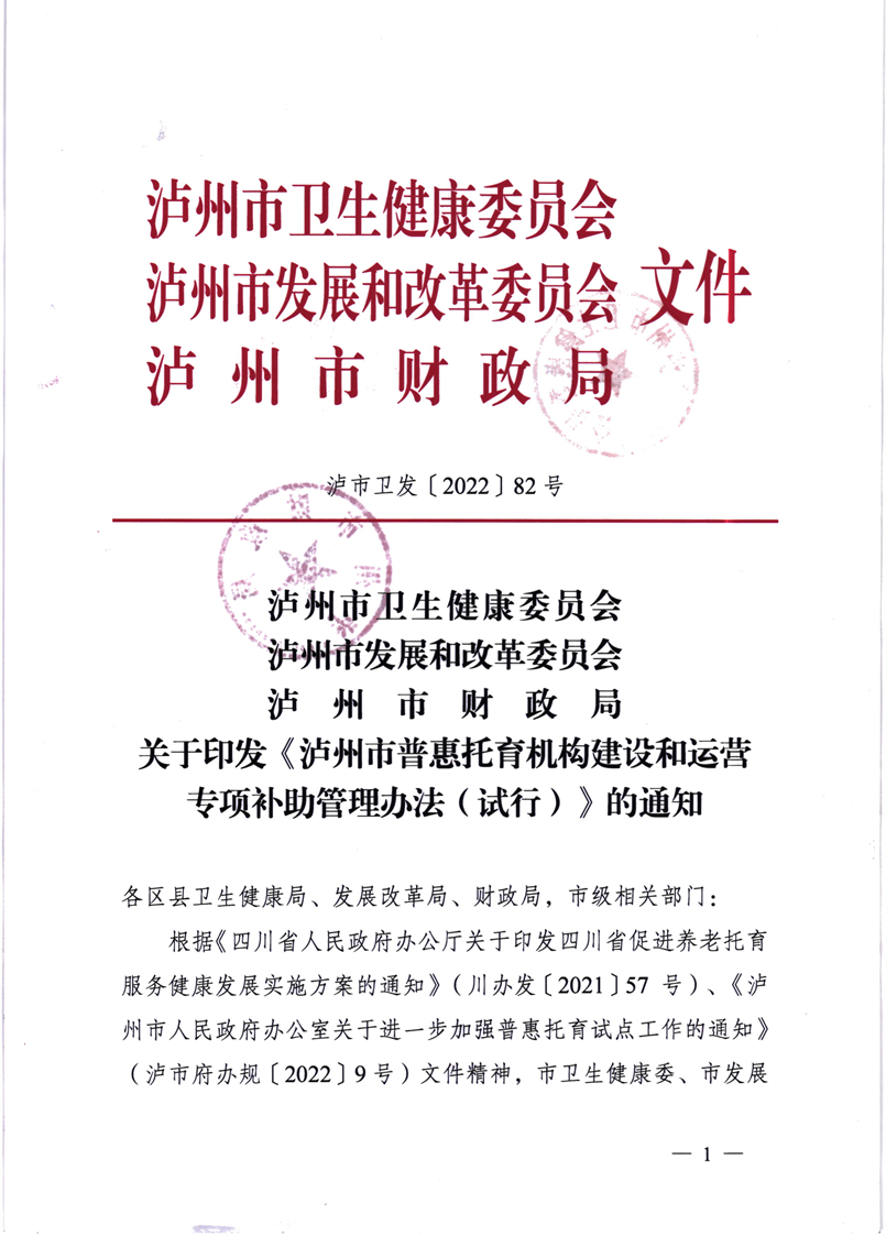 泸市卫发〔2022〕82号三联合(关于印发《泸州市普惠托育机构建设和运营专项补助管理办法(试行)》的通知) 来源:县卫生健康局 发布时间:2023-10-09 17:03:03 浏览次数: 次 【字体:小 大】 智能标签: 三联 关于印发 泸州市 普惠托育 机构 分享到: 【打印正文】 相关内容