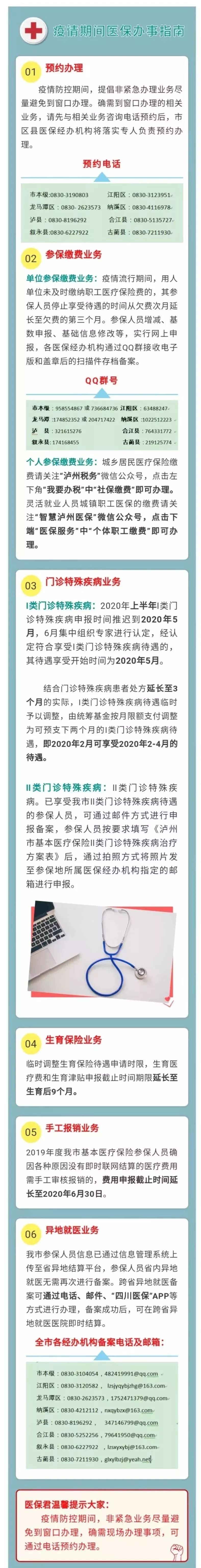 为避免医保服务大厅人群聚集引发交叉感染,泸州市医疗保障局对相关医保业务经办进行了临时性调整。