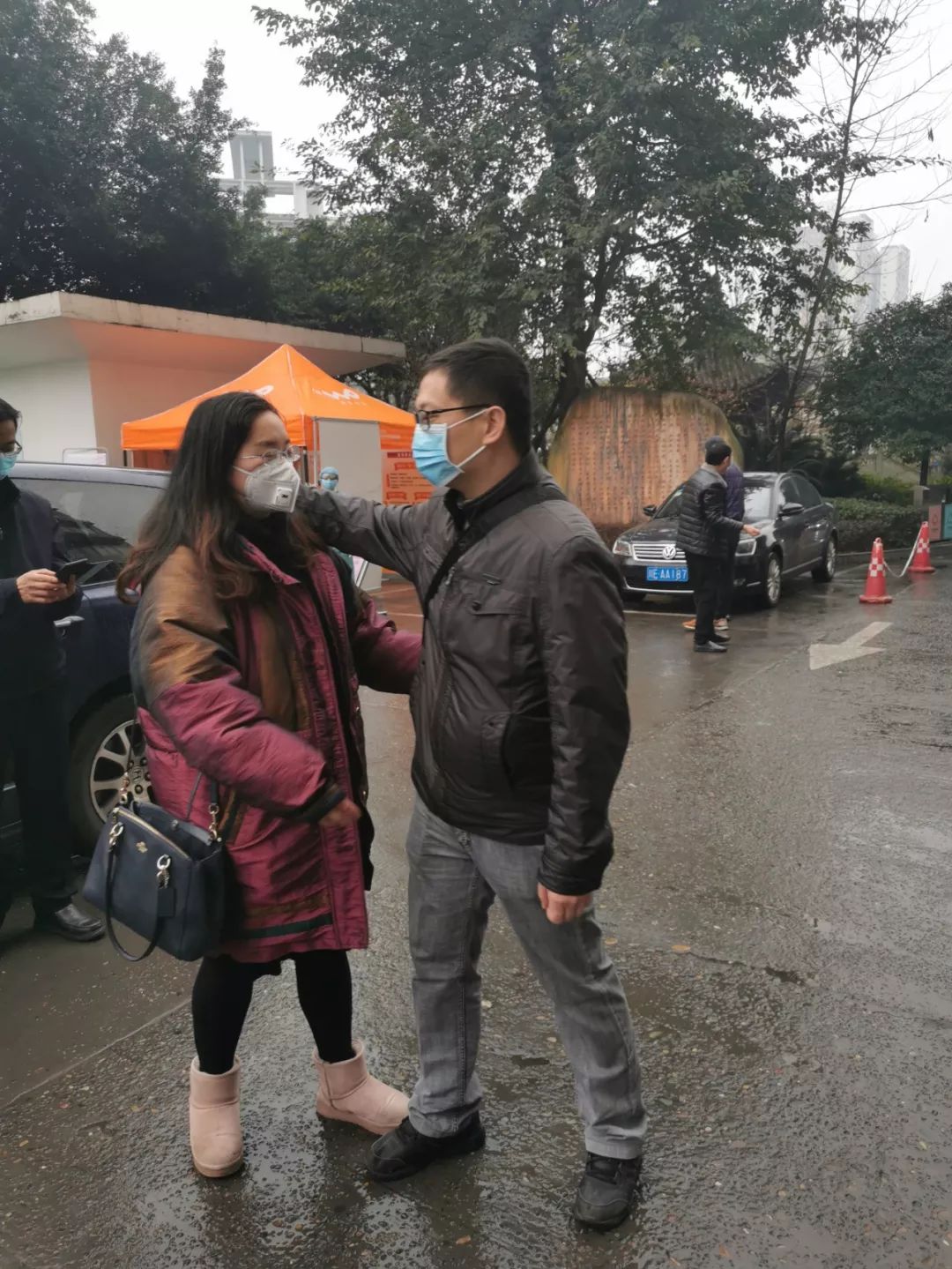市妇幼保健院重症医学科主治医生王德明昨天夜里还在医院留观病房值班,凌晨3点接到了出征湖北的通知。随后,他在微信上给妻子留了言。今天早上,王德明拿上值班行李,直接从病房出发赶到集结地,而他在西南医科大学附属医院工作的妻子也一早赶来送别。