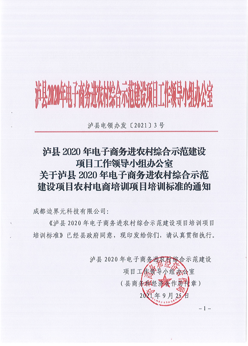 泸县2020年电子商务进农村综合示范建设项目工作领导小组办公室关于泸县2020年电子商务进农村综合示范建设项目农村电商培训项目培训标准的通知 来源:泸县商务和经济合作局 发布时间:2021-09-25 15:30:39 浏览次数: 次 【字体:小 大】 智能标签: 泸县 电子商务进农村 综合 分享到: 【打印正文】 相关内容
