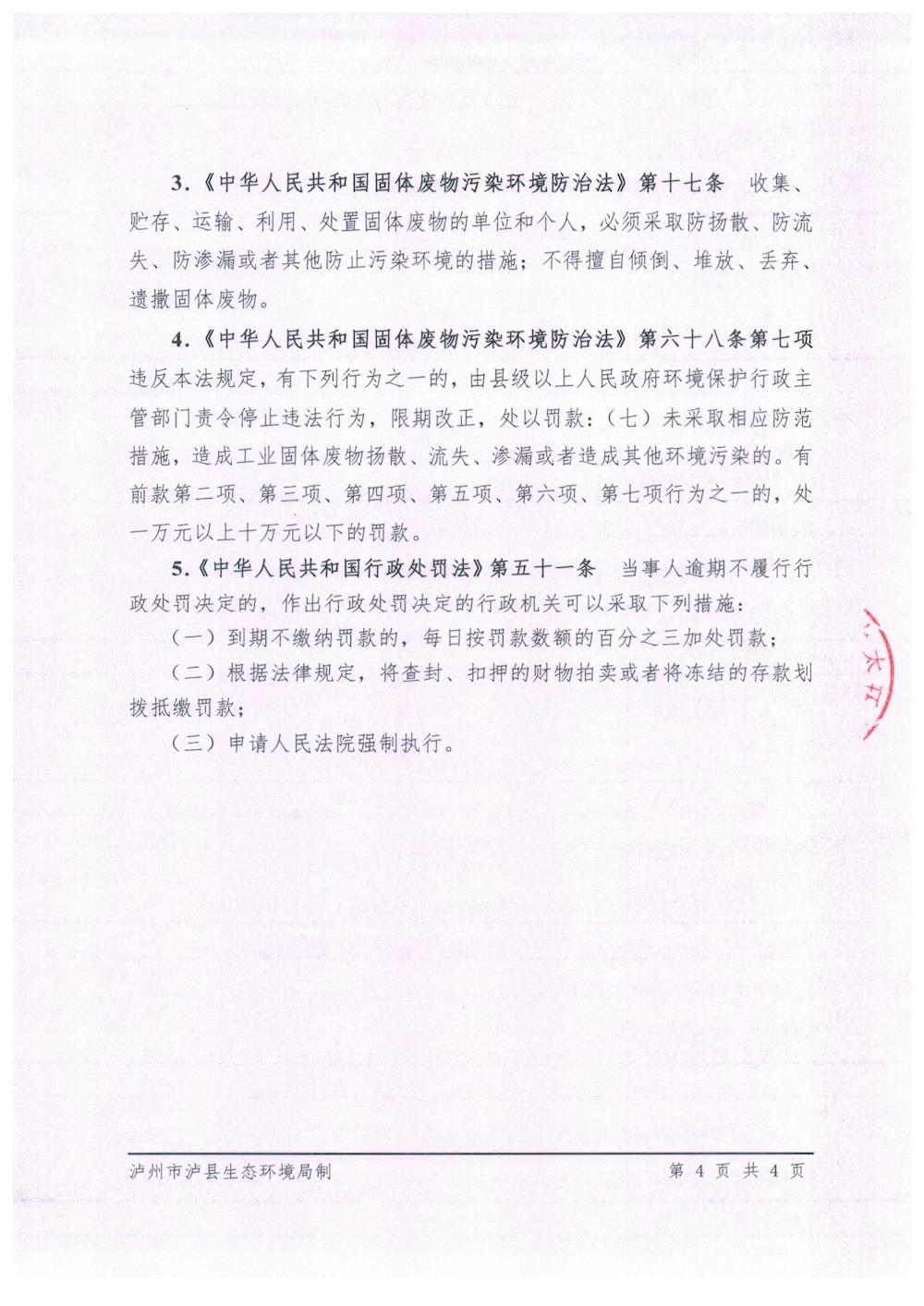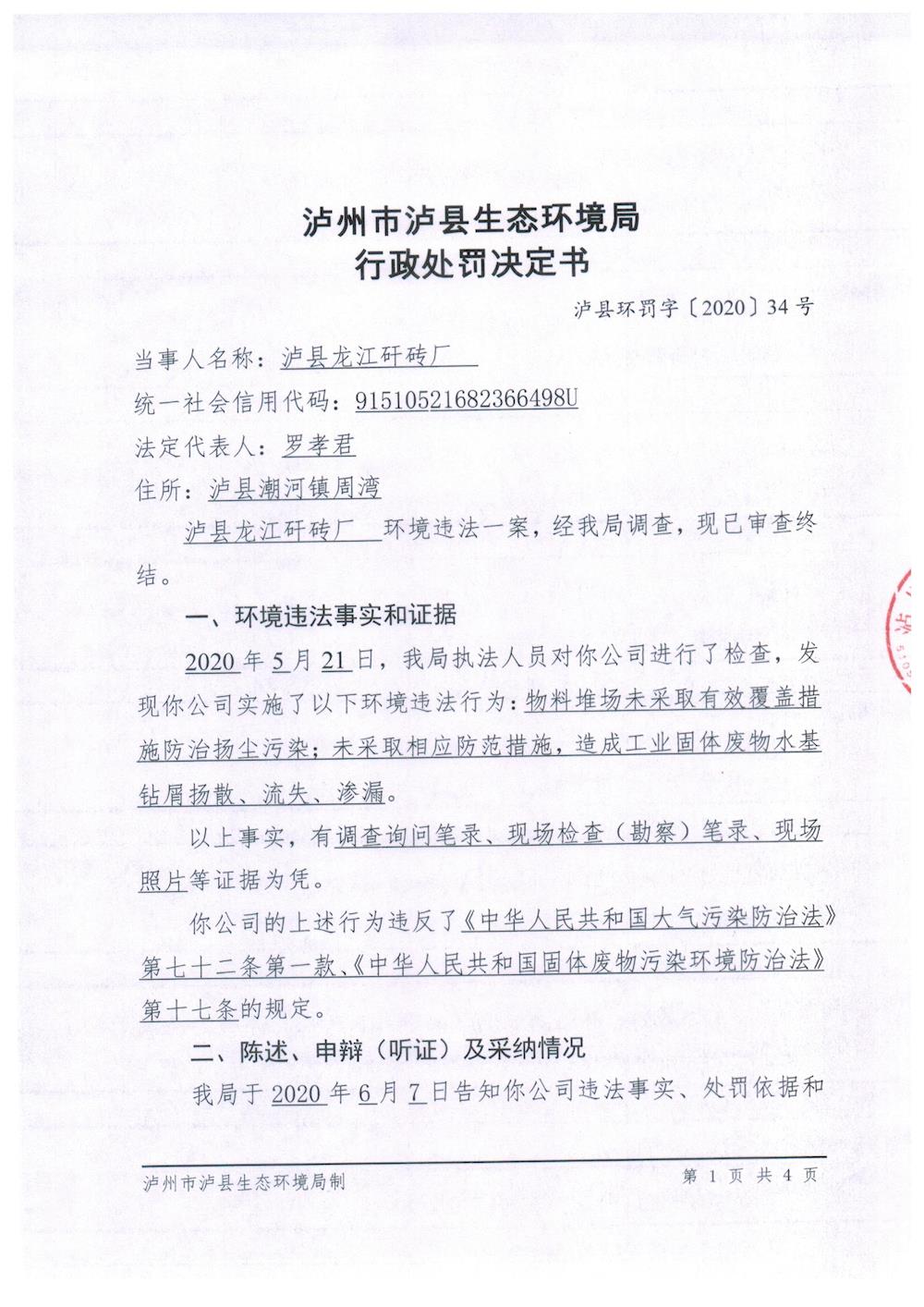 泸州市泸县生态环境局行政处罚书(泸县龙江矸砖厂)