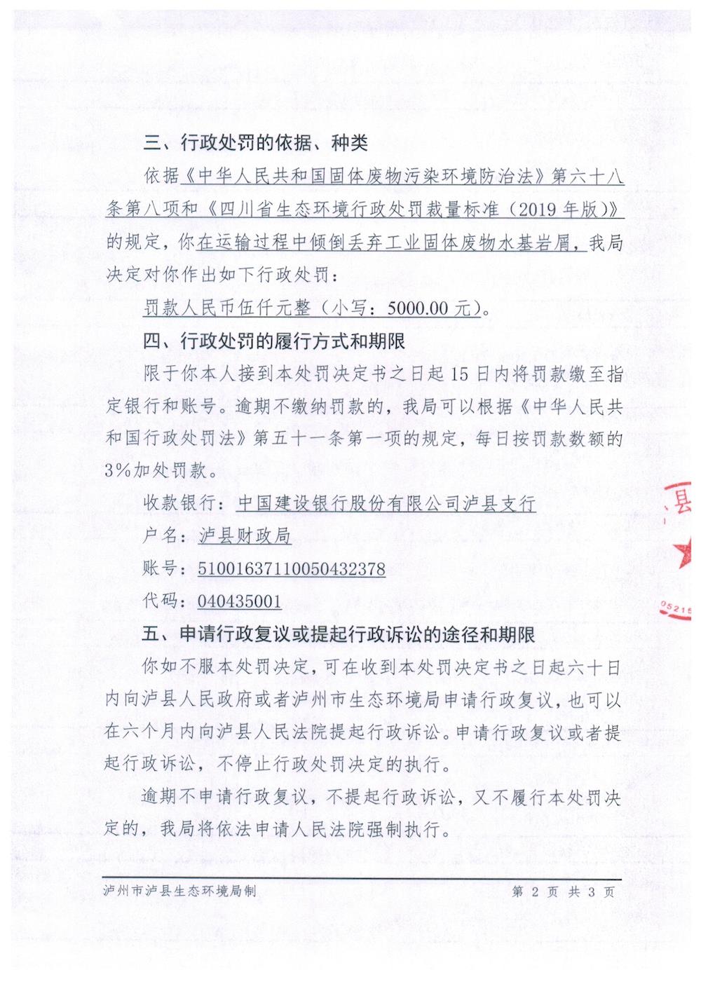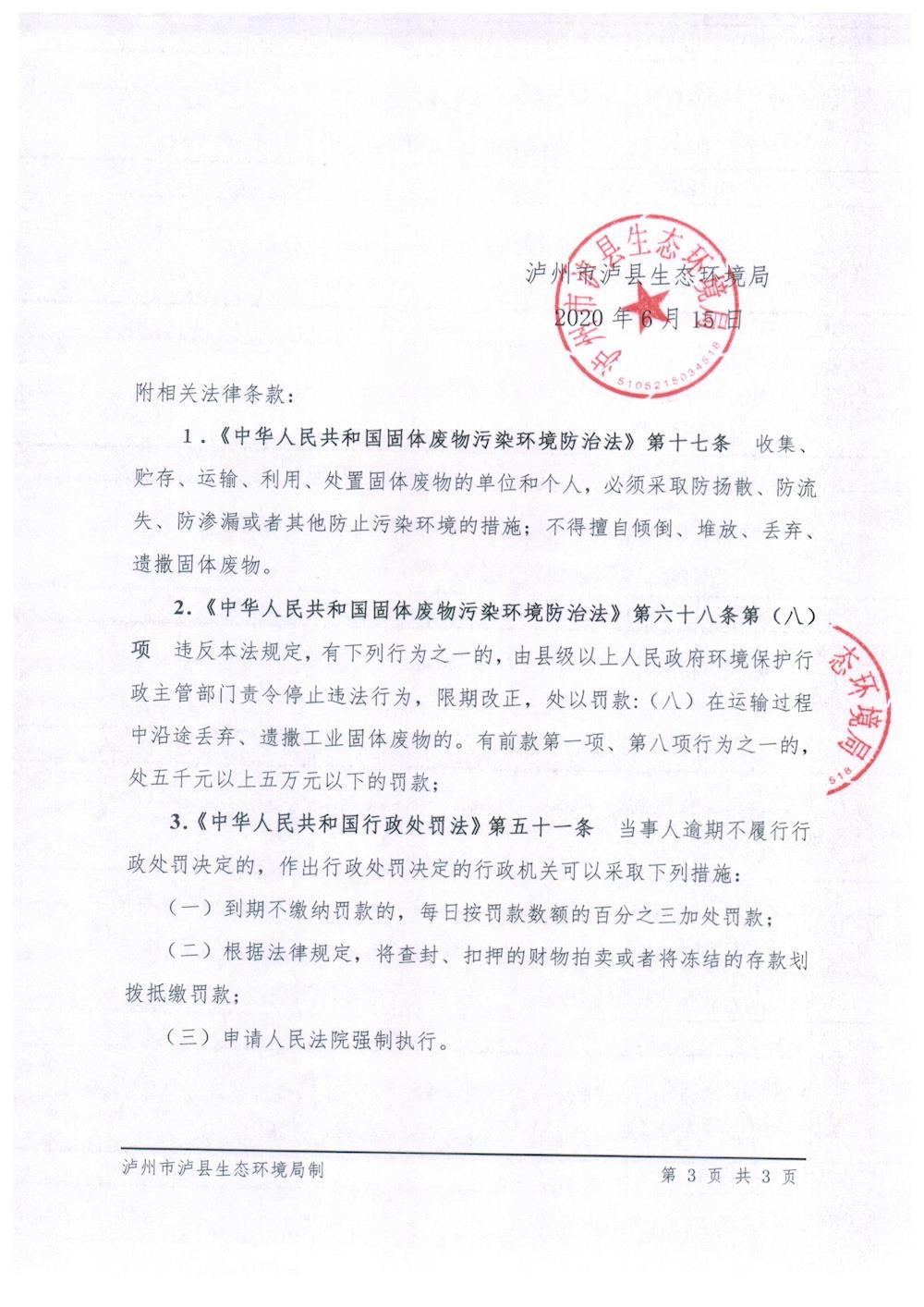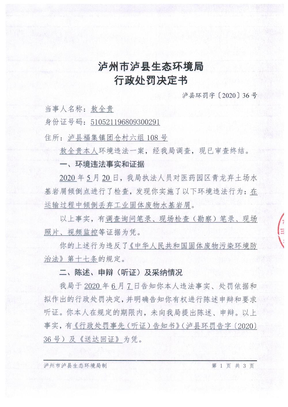 泸州市泸县生态环境局行政处罚书(敖全贵)